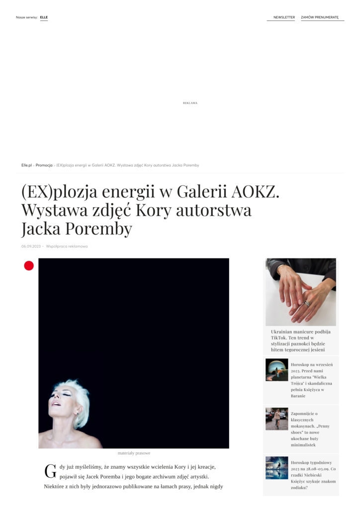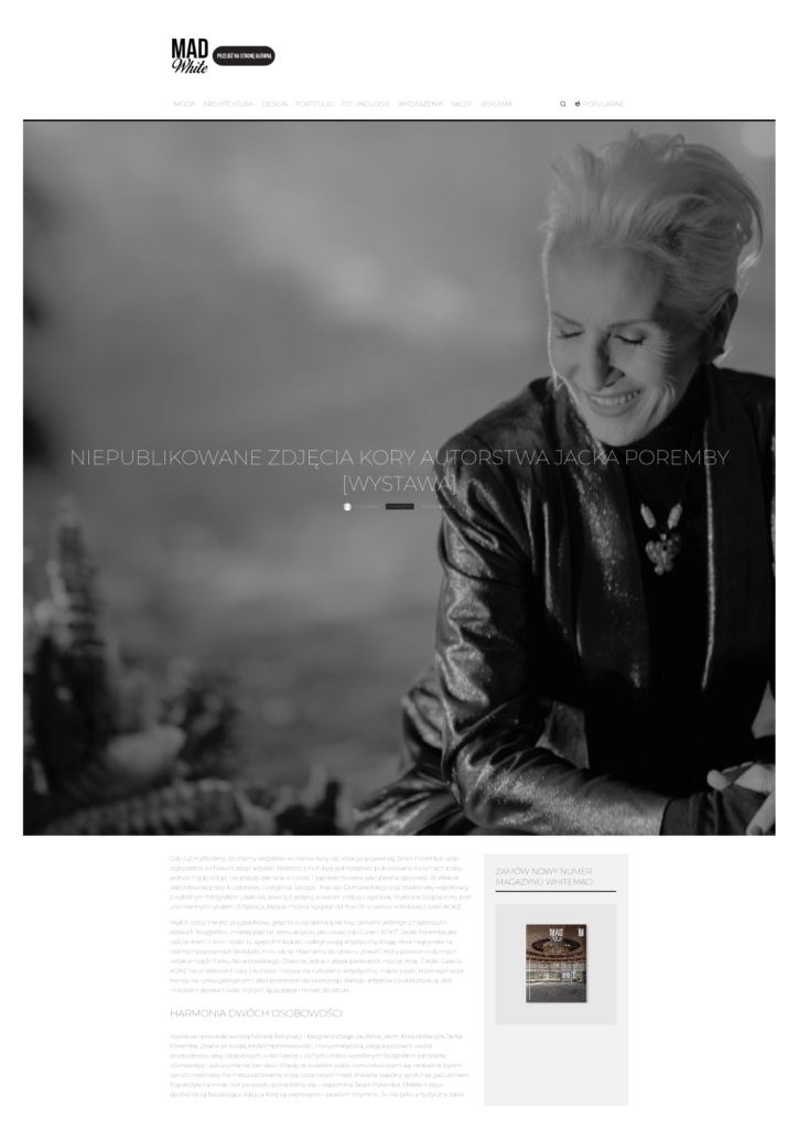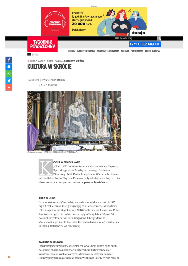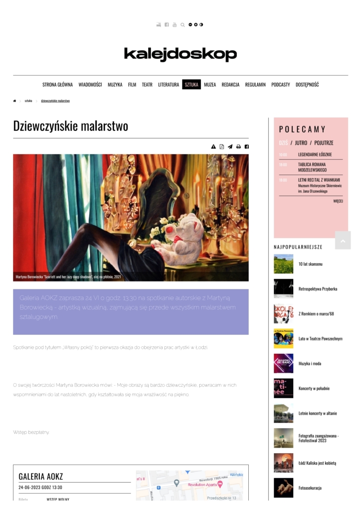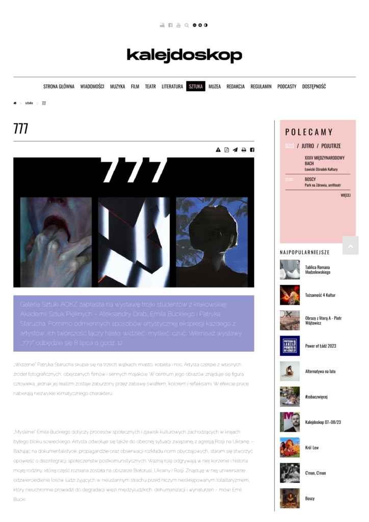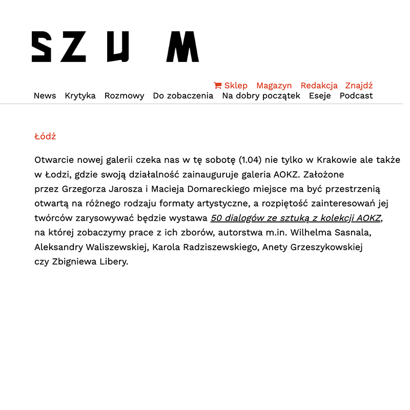 Media Wyborcza Dziennik Łódzki chillizet w tonacji kultury Zwierciadło kalejdoskop artinfo.pl Dziennik Łódzki VIVA! Dziennik Łódzki White MAD Elle Vouge kalejdoskop Dziennik Łódzki kalejdoskop OBIEG w tonacji kultury SZUM kalejdoskop lodz.wyborcza.pl Tygodnik Powszechny tygodnikpowszechny.pl